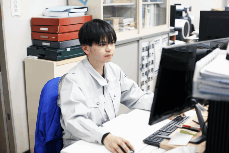 入社後は、実際の現場での実務を通じて技術を身につけています。初めは不安もありましたが、優しく丁寧に指導してくださる先輩方のおかげで、安心して業務に取り組むことができました。現場では日々新しい発見があり、自分の成長を実感できる環境が整っています。また、職場はとてもアットホームで、部署を越えてのコミュニケーションも活発です。相談しやすい雰囲気があり、風通しの良さを感じています。今後はさらに知識と経験を積み、チームの中核として活躍できるよう努力を重ね、社会と会社の発展に貢献していきたいと思っています。