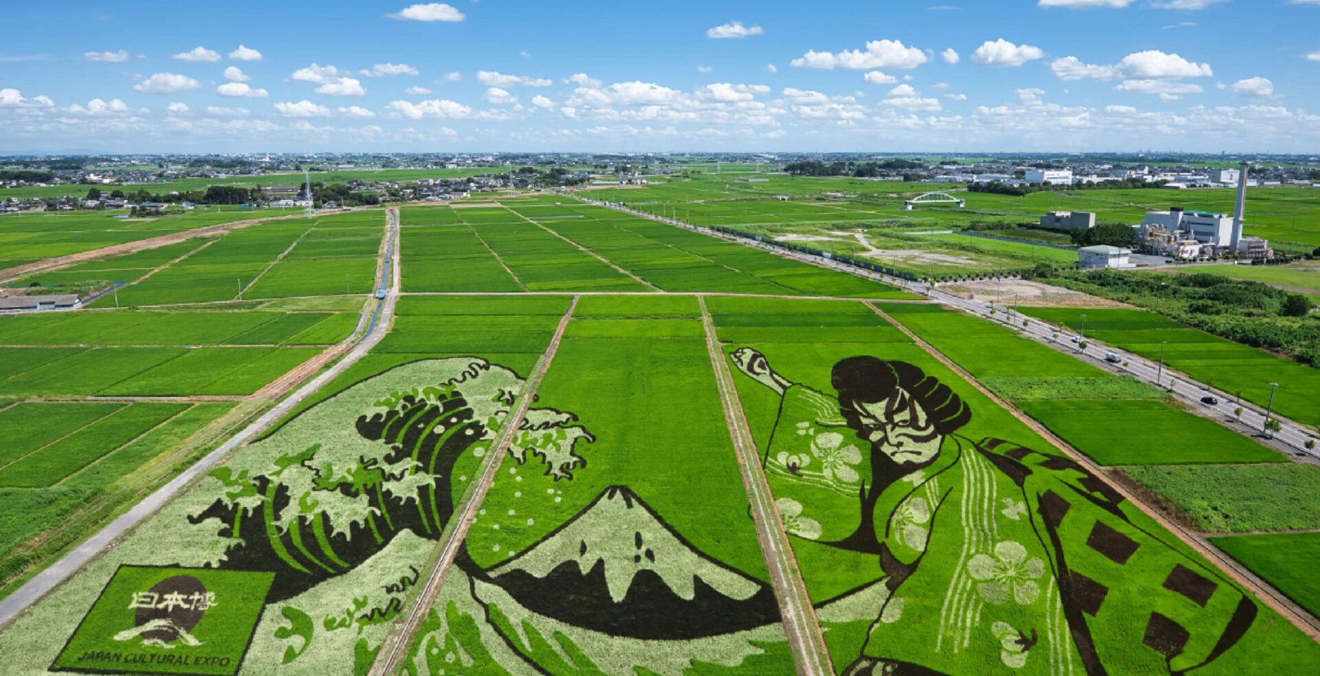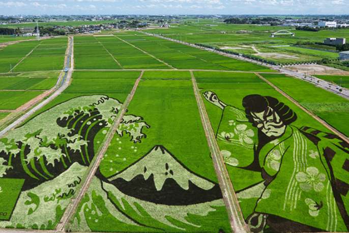 行田市の名物である世界最大の田んぼアートを、高度な測量技術で支えています。