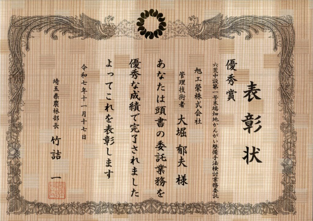 令和7年度埼玉県農林部優秀委託業務表彰において優秀賞を頂きました。
