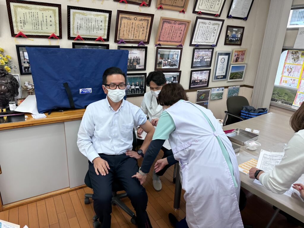 先日、行田市内の医院より出張いただき、社員のインフルエンザワクチン集団接種を行いました。
