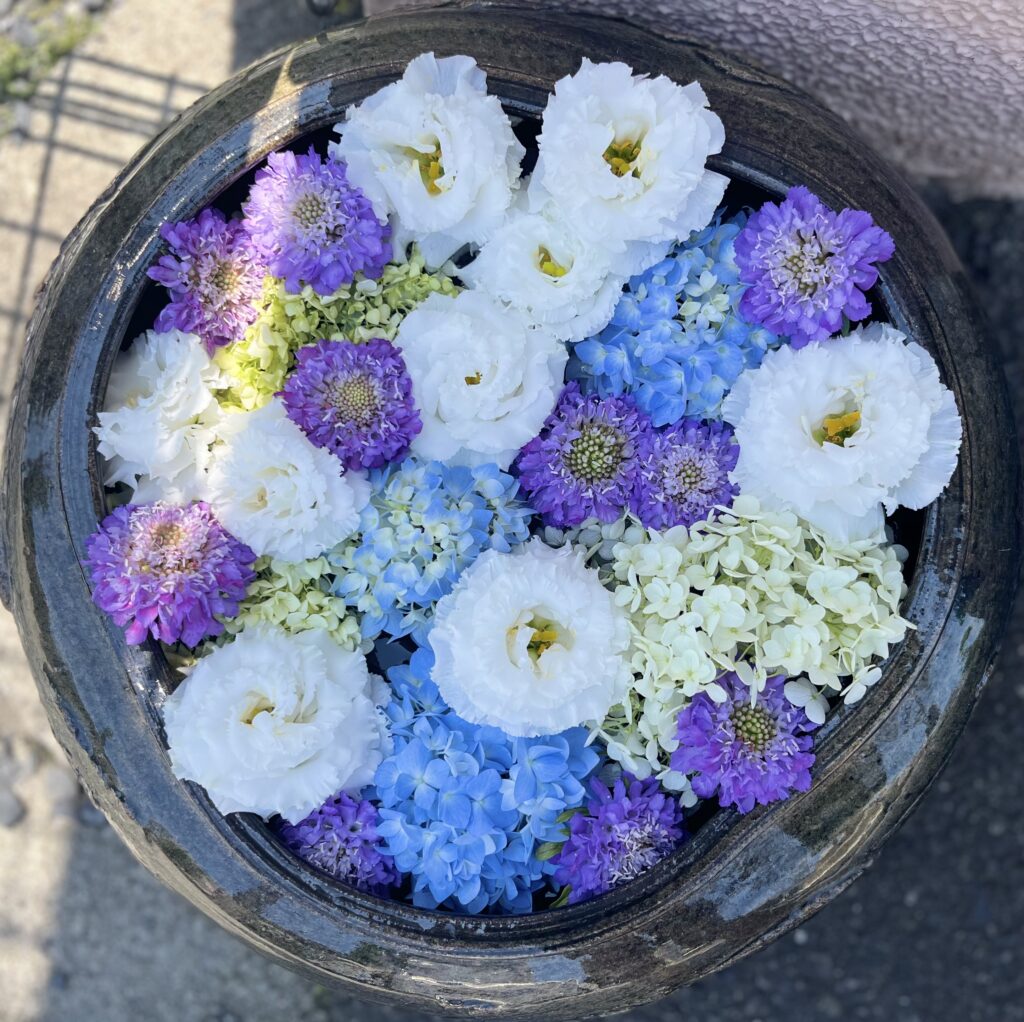 入り口前に花手水を設置しました!是非、写真撮影してみてください📸