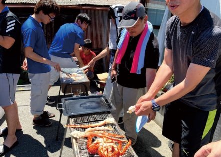 当社では、年に数回、会社が費用を負担する親睦イベントを開催し、社員同士の交流を深める機会を設けています。普段の業務では接点の少ない社員同士が交流し、親睦を深めることが目的です。全社で行う新入社員歓迎会をはじめ、部署ごとの忘年会、バーベキュー大会、懇親会など、多彩なイベントを実施。部署を越えたコミュニケーションが生まれ、会社全体の一体感を育んでいます。