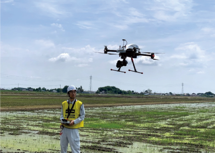 記録的な大雨により関東各地の河川が氾濫した令和元年東日本台風の際には、ドローンを運用し、荒川水系浦山ダムの三次元地形測量を実施。堆積土砂量を正確に算定し、限られた時間の中で現場の状況を迅速に把握することで、地域の安全確保に貢献しました。